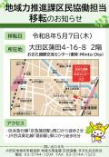 区からのお知らせ公開日:2026年03月27日大田区地域力推進課区民協働担当の執務室移転について大田区地域力推進課区民協働担当の執務室について、下記のとおり移転しますのでお知らせいたします。